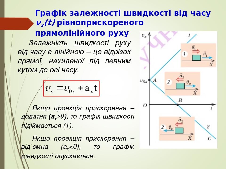 Графік рівноприскореного руху. v(t). Рівняння швидкості рівноприскореного руху.